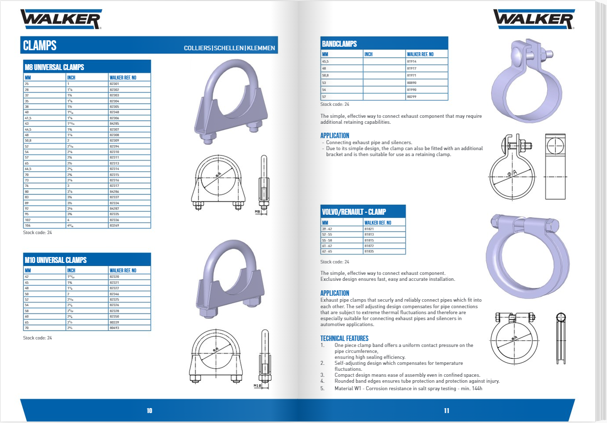 The Walker range of universal parts includes, tailpipes, connecting pipes, exhaust bends, flex pipes and pipe extensions as well as clamps, hardware, flanges, hangers and other components commonly needed to ensure a lasting, high-quality repair. Also covered in the catalogue is the brand’s extensive offering of emissions control system chemicals such as regeneration activator and prevention dose and fuel-borne catalyst. The full range of Walker products is available through leading replacement parts distributors throughout Europe.